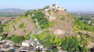 पहाड़ी की चोटी पर विराजमान देवी का भव्य मंदिर दृश्य आकर्षण