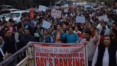 जोधपुर में बैंककर्मियों का प्रदर्शन, एसबीआई शाखाओं की बंदी का समय तय