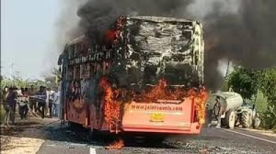 दिल्ली रूट पर बस में आग, 30 से ज्यादा यात्री सुरक्षित निकले