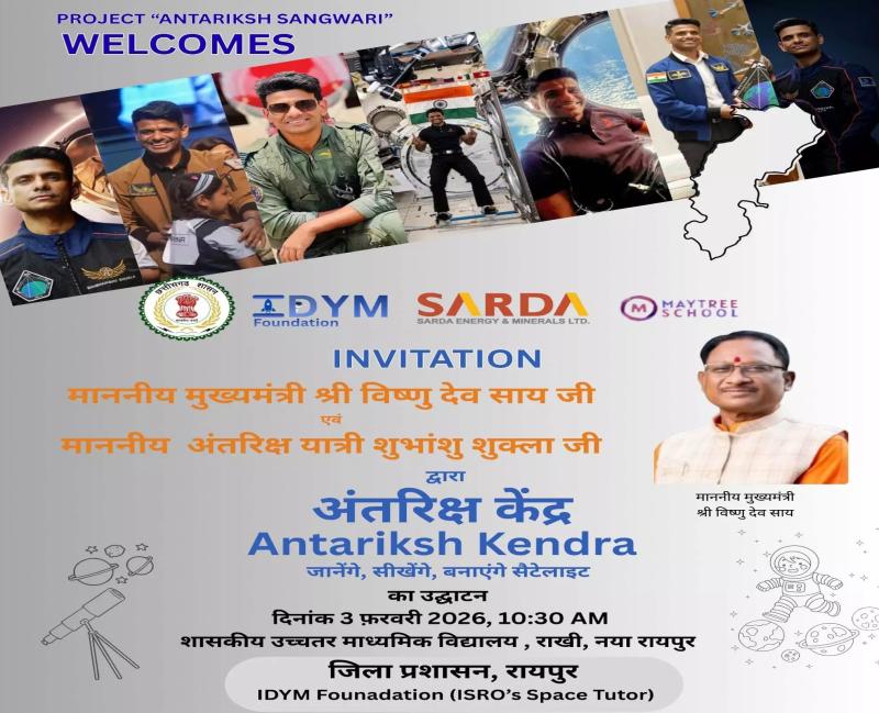 इस खास मौके पर गगनयान मिशन से जुड़े, अशोक चक्र से सम्मानित और भारतीय वायुसेना के वरिष्ठ टेस्ट पायलट ग्रुप कैप्टन शुभांशु शुक्ला पहली बार छत्तीसगढ़ पहुंचेंगे। वे “प्रोजेक्ट अंतरिक्ष संगवारी” के ब्रांड एंबेसडर के रूप में विद्यार्थियों से संवाद करेंगे और उन्हें अंतरिक्ष विज्ञान में करियर बनाने के लिए प्रेरित करेंगे।