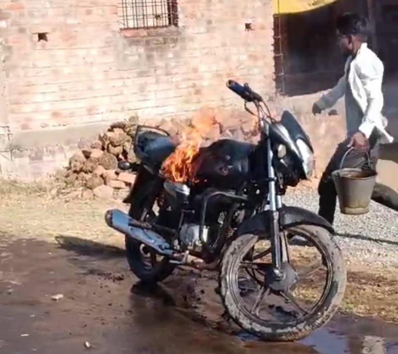 रंजिश का बदला: पेट्रोल डालकर जला दी बाइक, आरोपी की तलाश जारी
