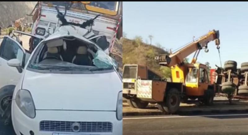 उदयपुर। जिले से एक दर्दनाक सड़क हादसा सामने आया है, जिसमें ट्रक और कार की जोरदार टक्कर में सास और दामाद की मौके पर ही मौत हो गई, जबकि एक दस वर्षीय बच्चा गंभीर रूप से घायल हो गया। हादसे के बाद हाईवे पर कुछ समय के लिए जाम की स्थिति बन गई। जानकारी के अनुसार, यह हादसा मालवा चौराहे के पास हुआ, जहां तेज रफ्तार ट्रक ने आगे चल रही कार को जोरदार टक्कर मार दी। टक्कर इतनी भीषण थी कि कार में सवार दया भट्ट और उनके दामाद पुष्पराज ने मौके पर ही दम तोड़ दिया। हादसे के बाद स्थिति और बिगड़ गई जब ट्रक के पीछे आ रहा एक तेज रफ्तार ट्रेलर भी अनियंत्रित होकर पलट गया। इस दुर्घटना में ट्रेलर चालक भी गंभीर रूप से घायल हो गया।