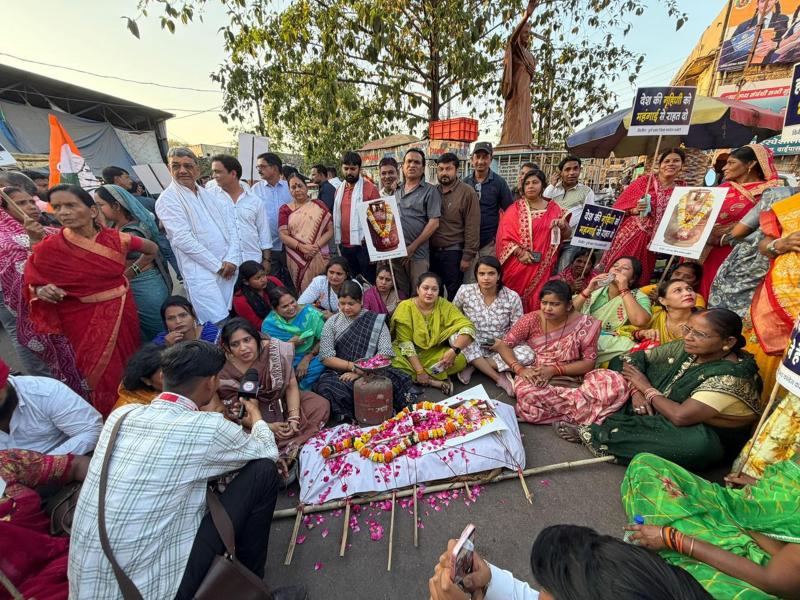 सिलेंडर कीमतों को लेकर दुर्ग में कांग्रेस का हल्ला बोल