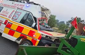 जयपुर सड़क हादसा: पलटी एम्बुलेंस, चार लोग गंभीर घायल
