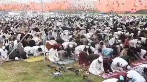 नमाज के बाद गले मिलकर दी एक-दूसरे को मुबारकबाद