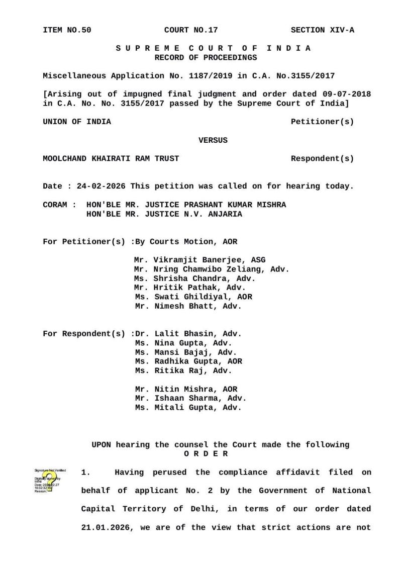 नई दिल्ली। सर्वोच्च न्यायालय ने दिल्ली के 51 प्राइवेट चिकित्सालयो को आर्थिक रूप से कमजोर मरीज का इलाज न करने के प्रकरण में अवमानना का नोटिस जारी किया।Supreme Court of India ने दिल्ली के 51 निजी अस्पतालों को आर्थिक रूप से कमजोर वर्ग (EWS) के मरीजों को मुफ्त इलाज न देने के मामले में अवमानना (Contempt of Court) का नोटिस जारी किया है। अदालत ने अस्पतालों से पूछा है कि क्यों न उनके खिलाफ अवमानना की कार्रवाई की जाए और उन्हें दी गई सरकारी रियायतें वापस ले ली जाएँ।