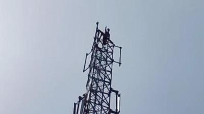 प्रेमी की गिरफ्तारी से टूटी युवती, मोबाइल टावर पर चढ़कर की रिहाई की मांग