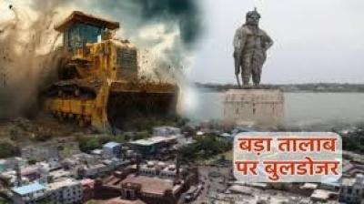 बड़ा तालाब को अतिक्रमण से मुक्ति: भदभदा में चला बुलडोजर, अवैध ढांचे ढहेंगे