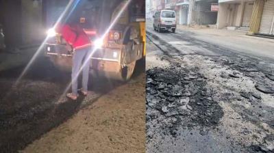 अंबिकापुर में NH सड़क घोटाला: 6 घंटे में उखड़ी 6 करोड़ की सड़क, ठंड में रातों-रात हुआ काम