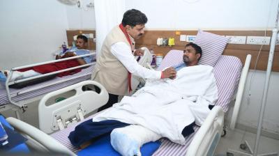उपमुख्यमंत्री विजय शर्मा ने रायपुर अस्पताल में IED विस्फोट के घायल जवानों से की मुलाकात