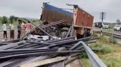पुलिया से टकराया ट्रेलर, पाइप गिरने से दो घायल गंभीर